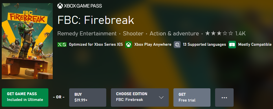 - Open the Xbox Store on your console or the Xbox App on your Windows PC and search for FBC: Firebreak.