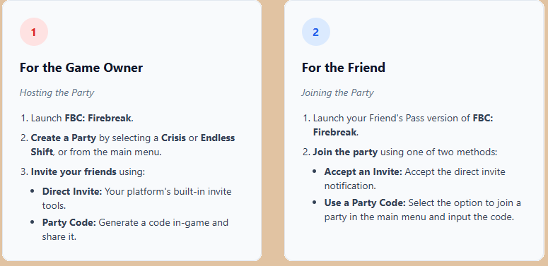 If you own the full game, the Friend's Pass allows you to invite up to two friends to join your party and play the game with you completely for free!